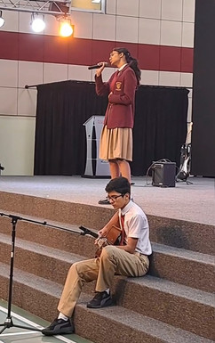 The annual Inter-House Music Competition conducted by the Cultural Committee of TMS is an event that gives senior school musicians a stage where their talents can be expressed and appreciated. It took place separately for grades 11-12 and 9-10 on the 12th and 19th of May respectively, with each house sending representatives in seven different categories: Western Vocals, Indian Vocals, Guitar, Keyboard/Piano, Violin, Drums, and Group Vocals.